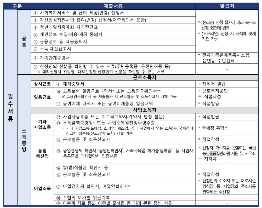 예: 1인 가구 기준 약 211만 원 이하 (2024년 기준) - 본인 명의 통장 보유 필수