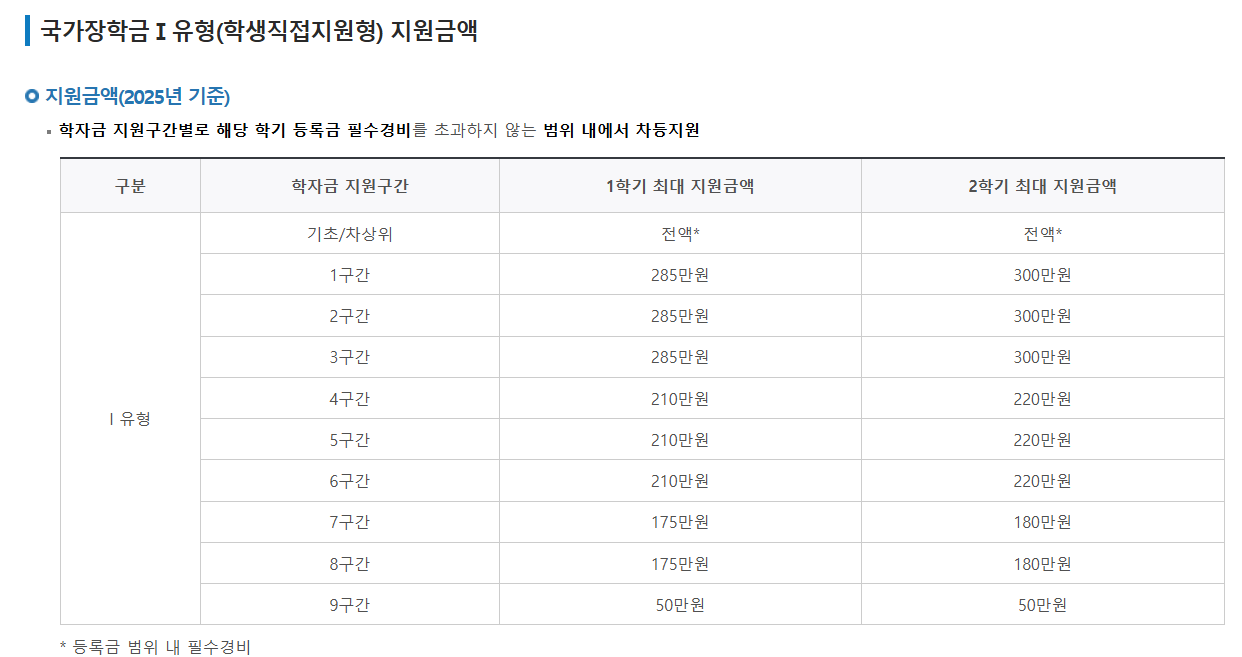 국가장학금 금액은 얼마인가요? (2025년 2학기부터 인상)