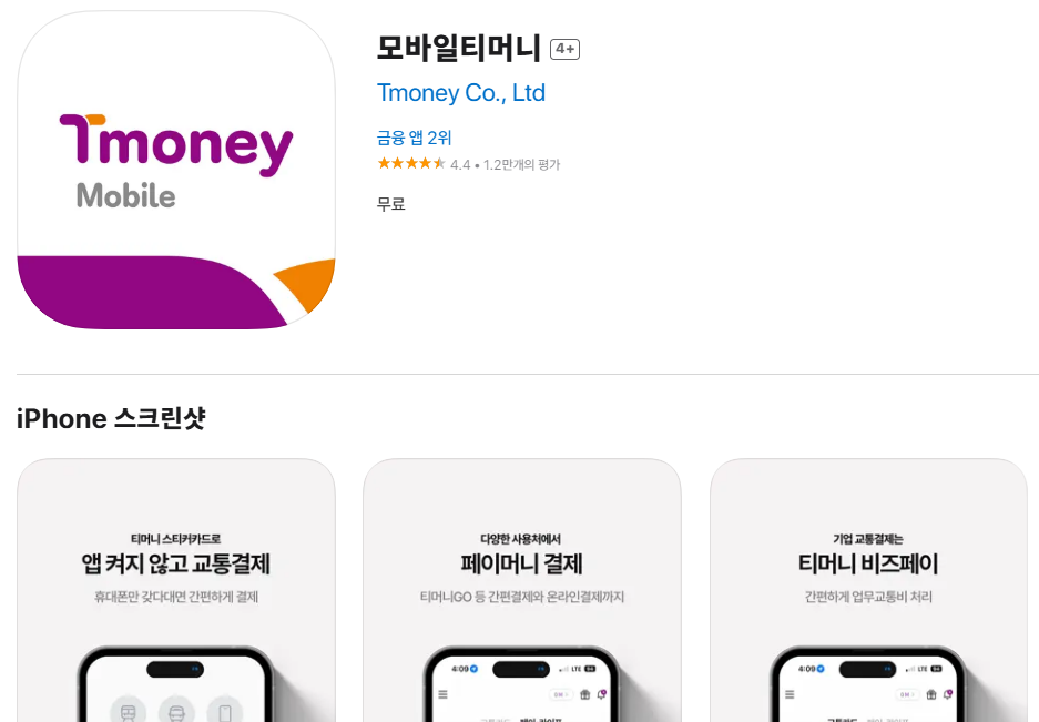 - 앱 스토어에서 ‘모바일 티머니’를 다운로드하고 설치