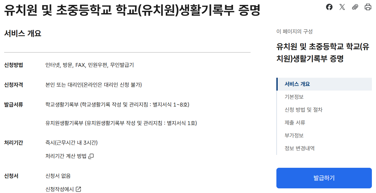 - 민원24 또는 정부24 이용 불가: 생활기록부는 나이스 대국민서비스 전용 발급 시스템을 통해서만 제공되며, 정부24에서는 발급되지 않습니다.