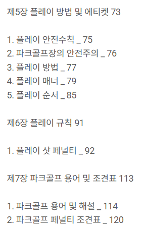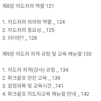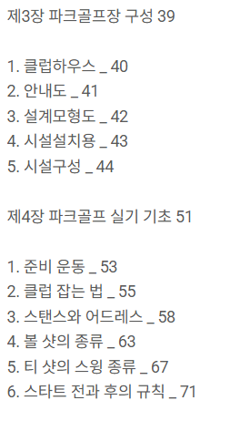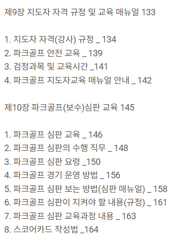 이 책은 파크골프 용어, 규칙, 기본 에티켓 뿐만 아니라, 파크골프 지도자, 심판 교육과정 내용에 대해서도 알 수 있고, 검정평가 시험문제도 있으니, 파크골프 관련 직종을 고려하는 사람이라면 참고하기 더 좋은 책일 것 같아요.